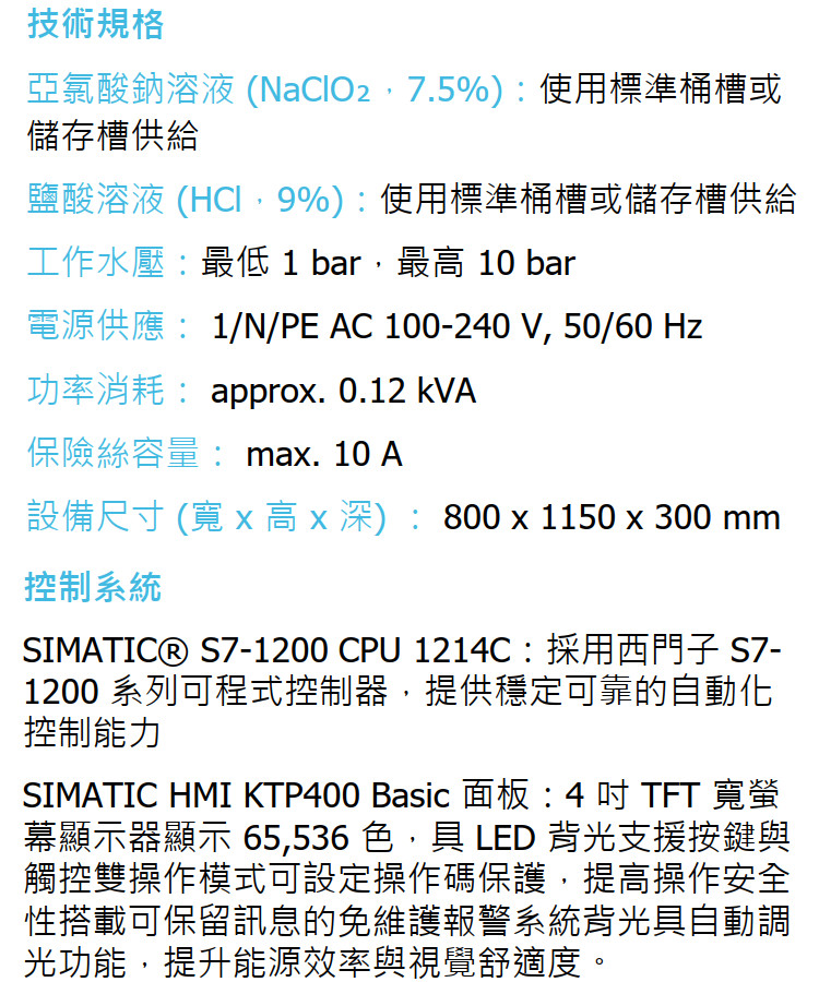 精準的產生控制,透過化學藥劑流量的測量與調節